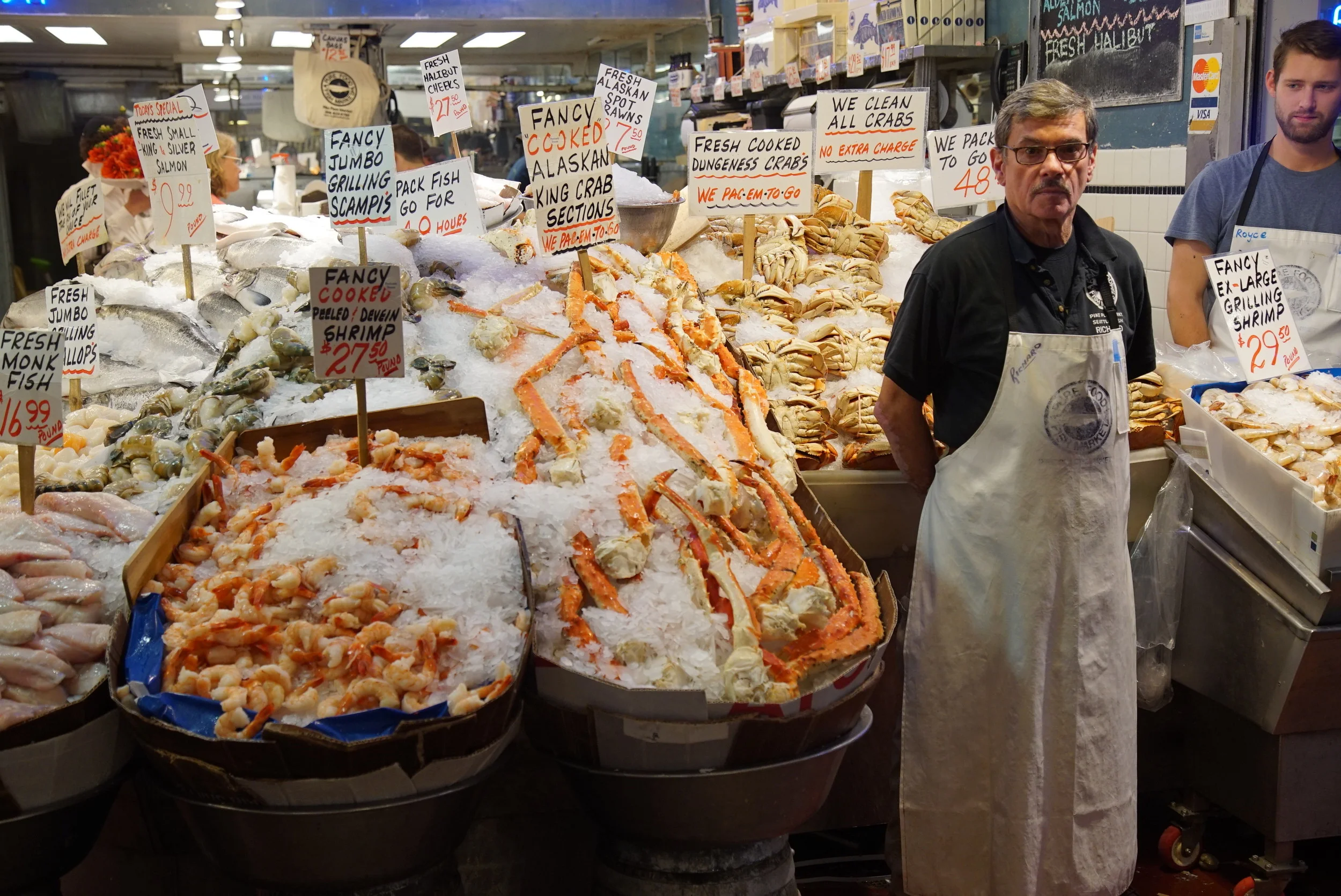 My brother and his wife are coming into town this weekend so I thought I'd pop by Pike Place to pick up some snacks -- our kitchen is painfully empty. While I've been there before, I forgot what a tourist trap is it, especially on a beautiful Friday afternoon in summer. So I snapped some pics, made a new BFF, and did my shopping at Whole Foods.